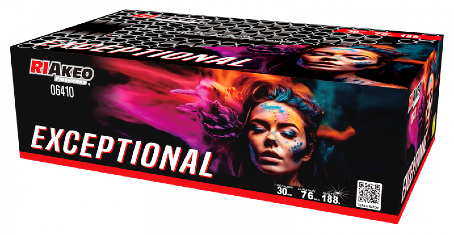 Exceptioneel in alle facetten. Kleuren zoals je nog niet eerder gezien hebt. Een dubbele compound met 30mm tubes en 188 schoten om je vingers bij af te likken. Ongekende kwaliteit, 2x2 kg ongetemde power komt los. Vuurwerk zoals je nog nooit gezien hebt, ongekend dikke waaiers wisselen de kleurrijke uptempo schoten af.